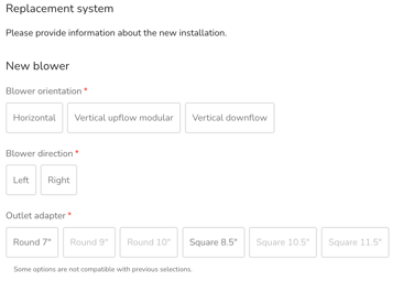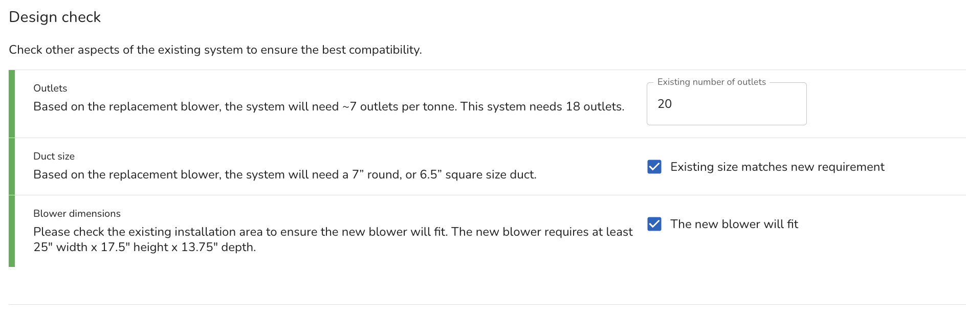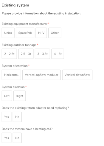 Note: if we know the outdoor unit tonnage, the system will give us what we need. So we do ask which equipment model you’re replacing, but the important data for the app to capture is the outdoor tonnage