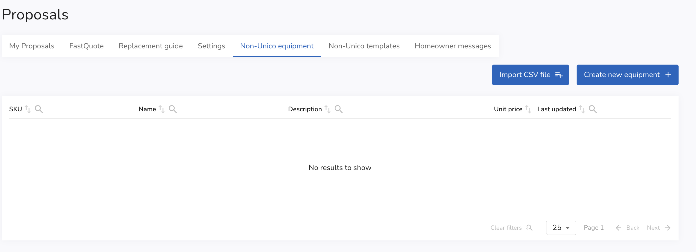 Head to Proposals from the left side bar → Non-Unico equipment.